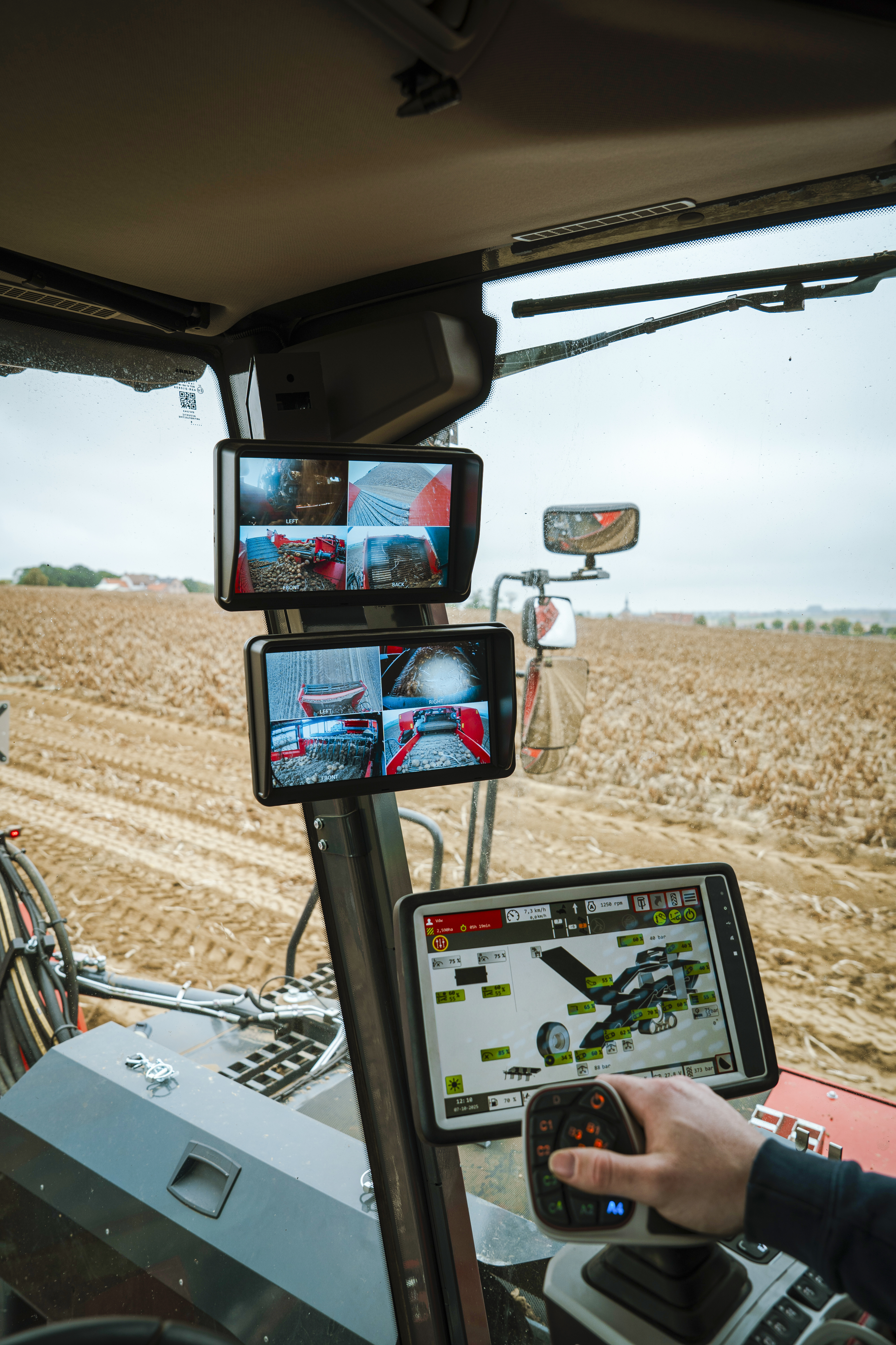 Grâce à son équipement de série et à ses options supplémentaires, la R3060 apporte toute l'aide possible au conducteur pour obtenir les meilleurs résultats lors de la récolte de produits tels que les pommes de terre. Grâce à la disposition de la nouvelle cabine spacieuse Claas, Dewulf a créé un environnement de travail agréable axé sur le conducteur, où confort et ergonomie prennent un tout nouveau sens. Le fonctionnement de la manette et des unités de commande des sections d'arrachage et de conduite offre au conducteur luxe et simplicité quant à l'utilisation de l'arracheuse. Le moteur Scania DC9 385A Tier V Final (Ad Blue) génère une puissance de 350 ch et vous impressionnera par son fonctionnement fluide et sa faible consommation.
