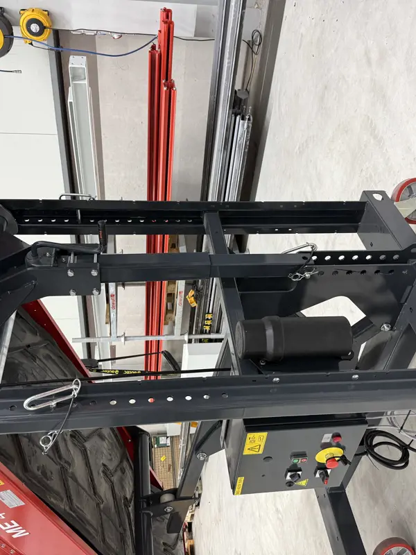 Ook de uitstort is in hoogte verstelbaar via een krik in de verticale staanders. Dankzij de optionele mechanische koppeling met gatenpatroon is de afstand tussen de ME 4-70 en de MB-kistenvuller instelbaar voor een optimaal gevulde kist.